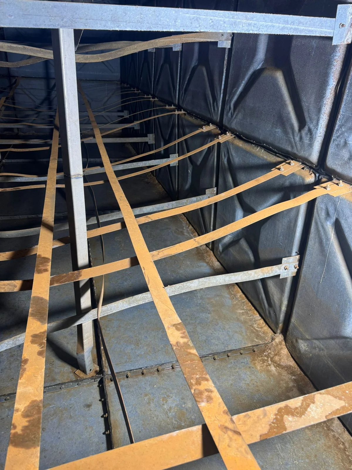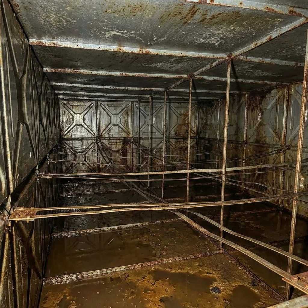 Paslanmış metal deponun korozyon temizliği ve gıda onaylı epoksi kaplama.