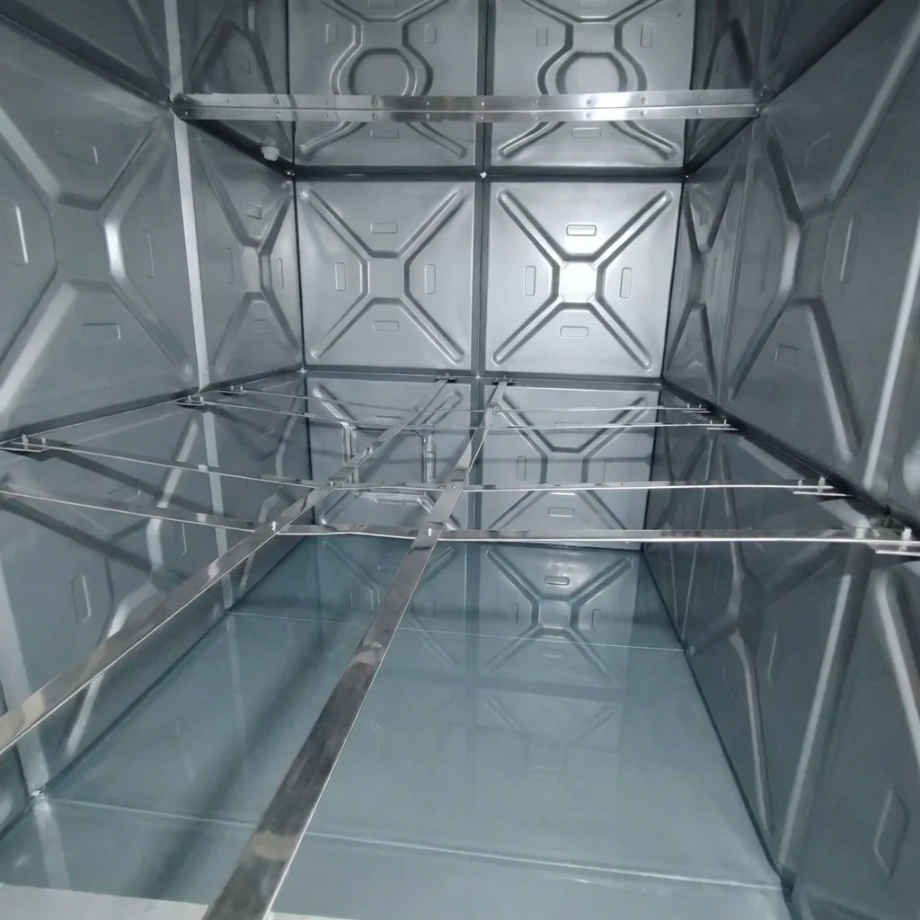 Eskimiş modüler su deposunun komple temizlik ve iç yüzey yenileme işlemi.